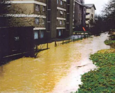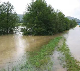 über die Ufer tretende Wasser bewirkte keine Überschwemmungen im überbauten Gebiet. Die überschwemmten landwirtschaftlichen Kulturen