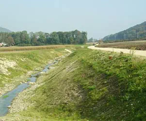 des Gerinnes in Fliessrichtung nicht Abstürze und Staudämme entstehen, die das Wasser zurückhalten. Die neu ausgebauten Abschnitte konnten so nicht